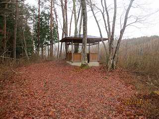 鞍部から南西側に自然傾斜の斜面を登って行ったところが萩野城展望台で、ここには東屋が設置されていた。