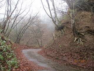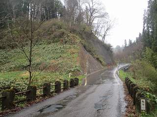 林道の山側の部分は見事にコンクリート加工されていて、なかなか取り付ける箇所がないのだが、かろうじてこの場所に道が付けられており、城に登ることができるようになっている。というかここからしか登れないと思う。