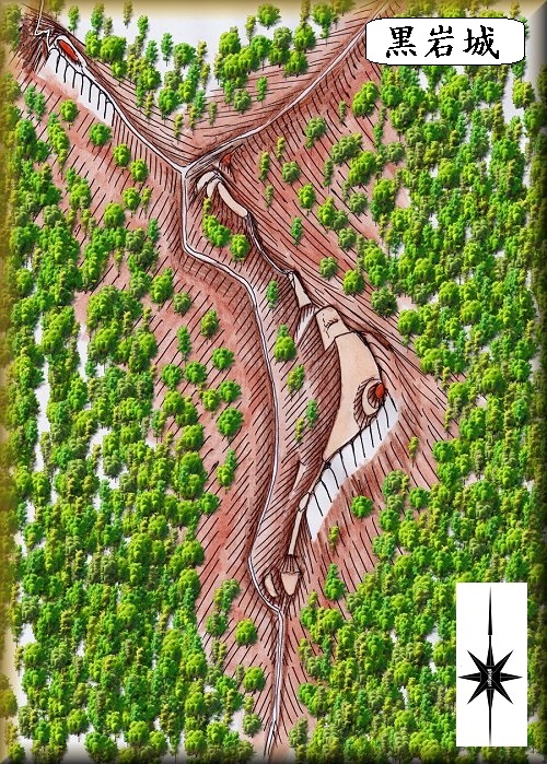 尾根上ではあるが、山頂近くにはいくつかの集落もあり、古くから街道として使用されていた場所であるらしい。そのため黒岩城はこの街道を抑えるという機能を有していた。殊に2つの街道が合流する地点であるので、両方の街道を掌握することができる地取りであったと考えっれる。