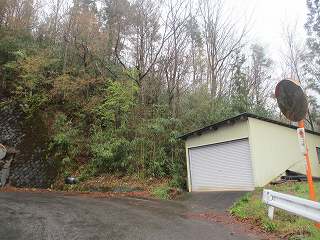 | 道路がヘアピンカーブするところ。この小屋の背後から登って行けそうである。 | 城の北端部分。一面のヤブのようだ。 |