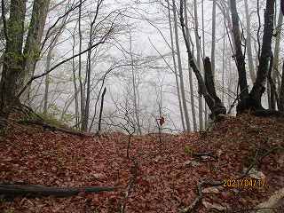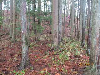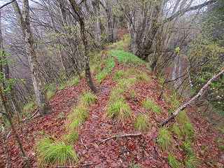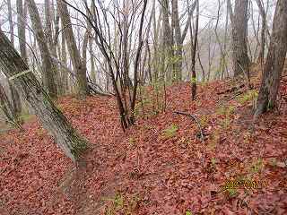 頑張ってヤブの中を登って行けばすぐに城内に到達できそうではあったのだが、この日は雨がけっこう降っている。この雨でヤブ山の登城は無理である。