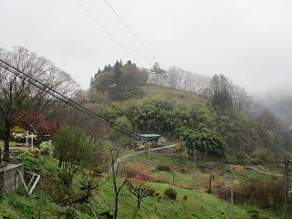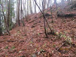 山稜の先端部を利用した数段の郭を造成した城館だったようだ。城の上の尾根がそのまま背後の山稜に続いているが、山稜は急斜面なので、背後から攻められることは想定していなかったようである。