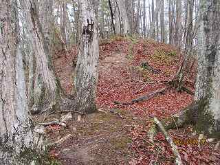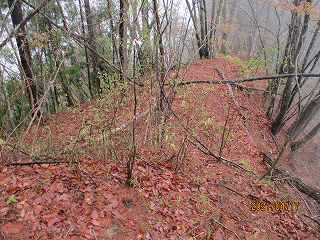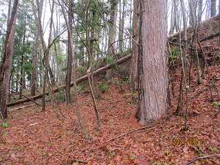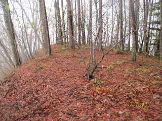 尾根上の道を制約する位置にあり、敵の侵入を監視する目的を有した城郭だったのであろう。