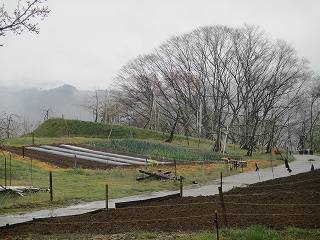 山麓の犀川沿いの国道から細い道を登って行くと水内の集落に着く。集落の道を進んで行って南東側の高くなっている区画の方に回り込んで行く。入口には何も表示がないが、台地上には一軒のお宅があるので、そのための道が付けられている。
