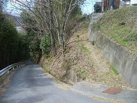 | 側面部の腰曲輪。 | 大宮神社との間にある道路も堀切の跡であったろう。 |