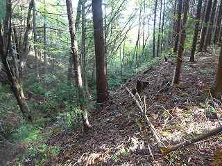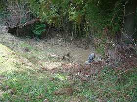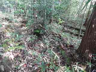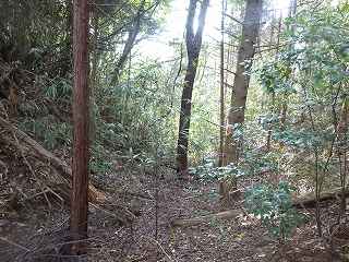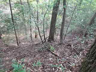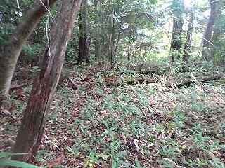 | 2郭西側の堀。非常に小規模なものである。 | 2郭内部は傾斜地形となっている。 |