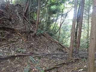 | 2郭北側の城塁。 | 1郭の堀切。大規模なものである。 |