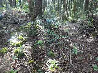 この部分から東側を2郭としてみたが、傾斜した地形でもあり、ここは実際には城域外であった可能性もあると思われる。