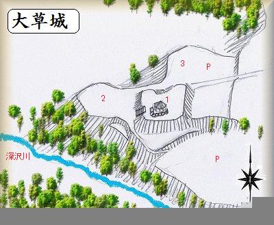 大草城は大草5043番地辺りにあり、城址公園となっていてgooglemapにも掲載されている