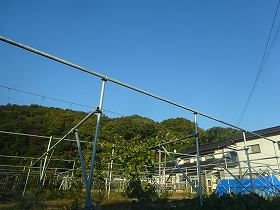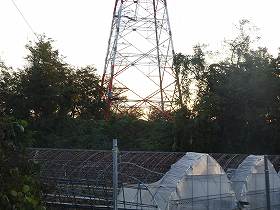 城址には大きな鉄塔が建てられているので、これを目印に台地縁部まで進んで行く。3郭の東側一帯は削り取られてしまっているようで、そこはビニールハウスの建てられた畑となっている。