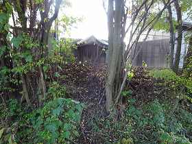| 土塁上に残されている稲荷社。 | |