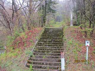 林道の入口がこの場所にあるが、上の神社までは遊歩道が付けられているようで、登り口は何カ所かあるようだ。この場所にも登山道の案内があり、この林道と途中で合流するようになっている。