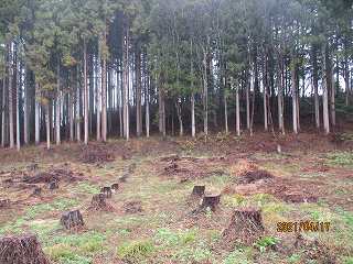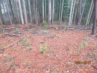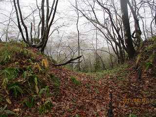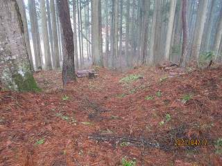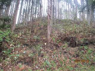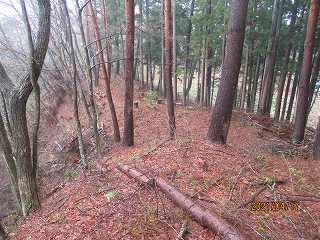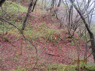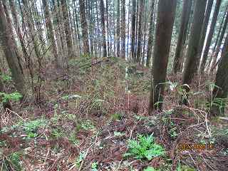 | 林道に削られた1郭北側部分。 | 東側の腰曲輪。 |