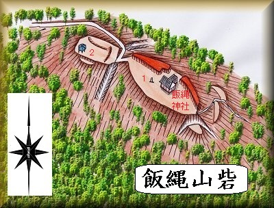 山頂には堀切で区画された2つの郭があり、1郭に飯縄神社が祭られている。2郭は馬出のような郭であり、ここには東屋が建てられている。小規模ながら、要害性の高い山城であったようだ。