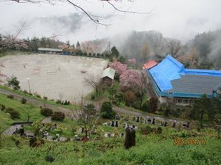 この先には集落があったのだが、地滑りによって多くの土地が流されてしまったため、集落の人たちは高山寺の北側の城ヶ峰に移転していったという。