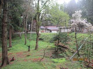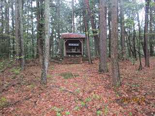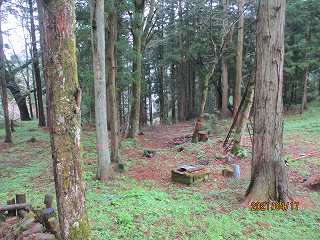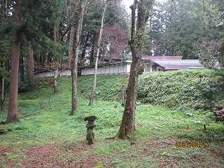 2郭の北側の山裾には、大日方氏ご先祖様を祭った祠と墓石がある。