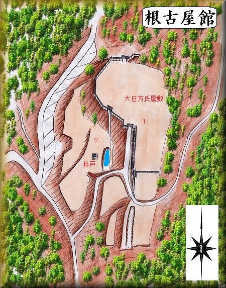 根古屋館の規模はそれほど大きなものではないが、館を営むには十分な広さがあり、周囲の切岸も鋭くなっている。それなりに防御性もある館となっている。
