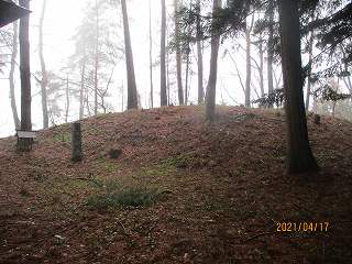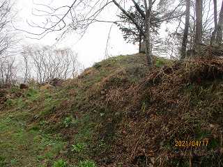 広大な2が城の中心であったと思われるが、内部に1の土壇のような高台がある。館を営むには狭いが、櫓台としては広大に過ぎる場所である。ともあれ、ここが1郭ということになろう。