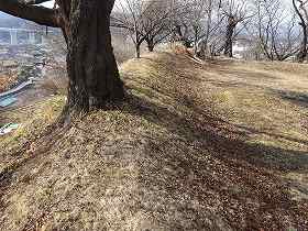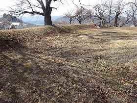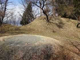 | 2郭から1郭城塁を見たところ。 | 2郭の土塁。 |