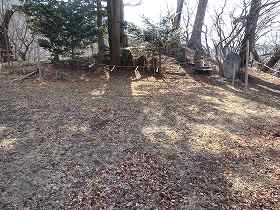 また、花見ヶ丘から南側にかけて段々の墓地が造成されているのだが、これもかつての帯曲輪を利用したものなのか、墓地の造成によって生じたものなのかは不明である。ただし、墓地を造成するにしても、ある程度それなりの地形がある場所を利用することが多いであろうから、もともと帯曲輪のような地形が存在していた可能性は高いのではないかと思われる。