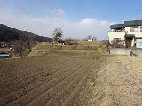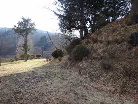 この部分から西側の台地下にかけて段々畑が造成されているのは、かつての城の段郭の名残なのであろうか。