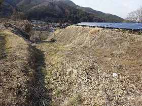 | 1郭との間の堀切。 | 1郭内部の土塁。 |