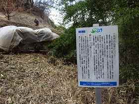 すると意外なことに道路脇に案内板が設置されており、ここが城址であることを明らかにしていた。これだけ破壊されていても、かつて城址だったということが地元の人たちに受け継がれているのであろう。