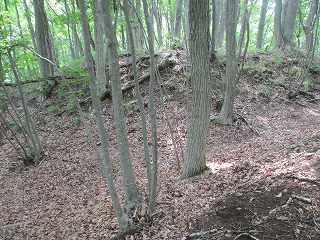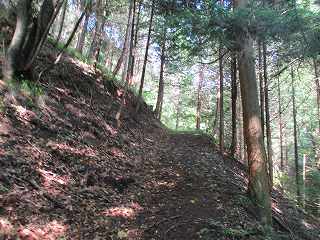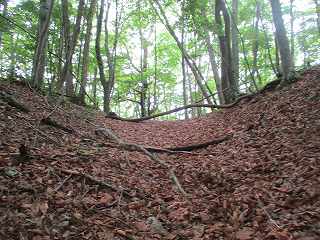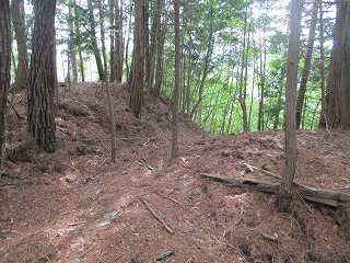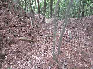 | その先の3郭との間には大堀切があった。城内で最大の堀切である。 | 大堀切の側面部。 |