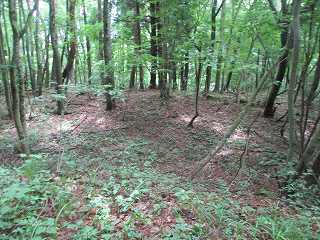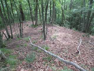 | 2郭の南側の帯曲輪群。 | こちらも帯曲輪群。加工は甘く、切岸の高さもあまりない。 |