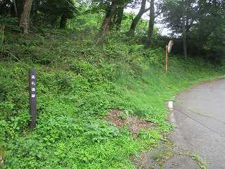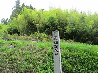 高村番所のすぐ西側の道路上に高城址入口と書かれた標柱が立てられている。「なんだ、登城道があるんだ」と一安心。ただし駐車場はないので、車はどこか離れたところの余白を探すしかない。