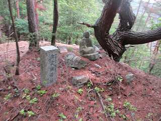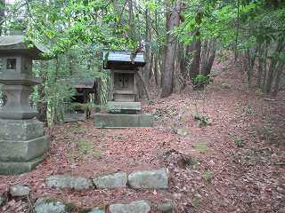 | 整備された階段が付けられているが、けっこうきつい! | 登城道の途中にある祠。 |