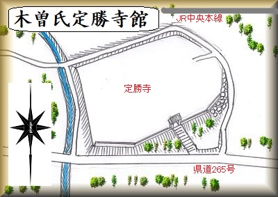 須原の定勝寺が、福島に移る前の木曽氏の館の跡であったという。定勝寺は100m四方ほどの面積があり、中世の城館を営むのにふさわしい広さがある。