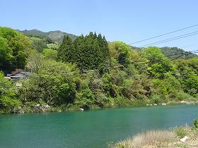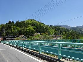 | 南側の木曽川沿いに遠望する和村城。 | 北側から城方向を見る。あちこちに山桜が咲いている。 |