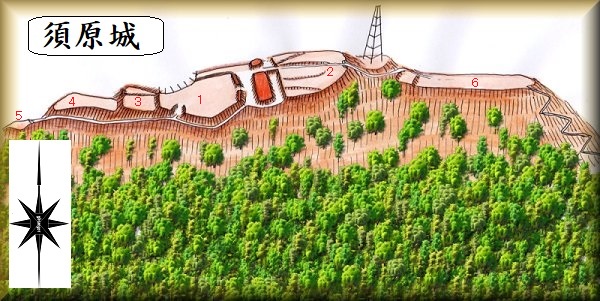 | 須原城は、定勝寺を居館とした木曽氏の詰の城であったと言われる。となると、かなり古い時代の山城であったということになるが、それにしては遺構がよく残っているといった印象を受ける。実際には戦国期にも使用されていた城郭と見てよいものと考える。 戦国期にもこの地は木曽氏の支配地域であったろうから、木曽氏の一族か家臣の詰の城として利用されていたのではないかと想定できる。 |