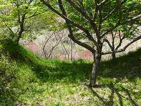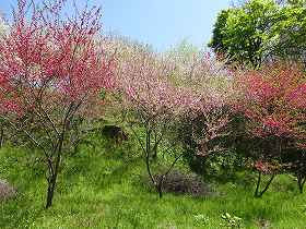 | 1郭城塁の北側下には幾種類もの山桜が咲き乱れていた。 | |