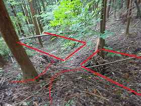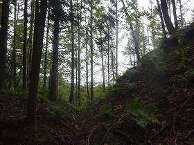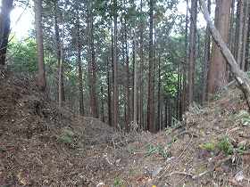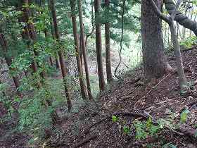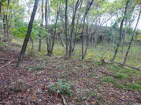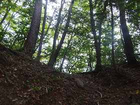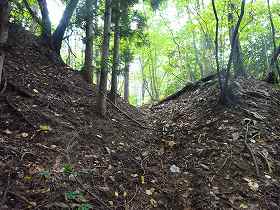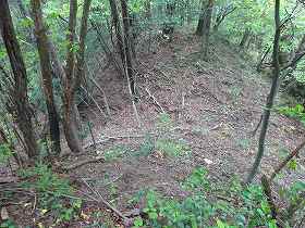 | 北城の下の腰曲輪。 | その下には大堀切がある。 |
