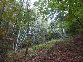 これを進んで行くと、大きな鉄塔が建てられていた。鉄塔の建てられているところは削平された地形になっているのだが、鉄塔の建設のために造成されたものなのかどうかは不明である。