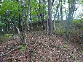 1郭は長軸20mほどと、それほど大きなものではないが、土塁を配置し周囲を切岸加工するなど、ちゃんと造成された郭となっている。その東側下には腰曲輪があり、その先は深い堀切となっている。この先にはさらに3本の堀切があり、敵の接近に警戒している。