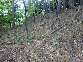 段郭の1つ1つはさほど大きなものではなく、切岸の規模もそれほどではないのだが、山麓近くからしっかりと造成されている。かなりの手間暇をかけなければできない構造である。