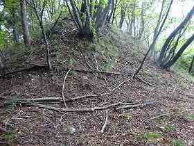 | 大堀切の先には、再び大きな堀切が造成され、城域を区画している。左側がDの部分。 | Dの先にも浅い堀切がある。 |