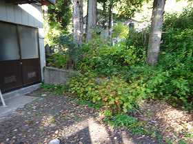 | 館跡に建つ薬師寺。 | 寺院の脇にある土塁らしきもの。 |