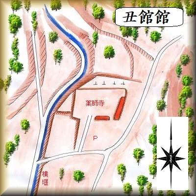 丑館館の城主等、歴史については未詳である。一説によれば仁科氏の初期の居館の1つであるというが、地元豪族の居館といった雰囲気ではない。それが真実であるのかどうかは不明である。