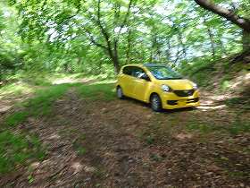 それでも私は宮坂さんを信じて、この林道をどんどん進んでいった。途中で何度も引き返そうと思ったが、それでもあきらめずに進んでいく。すると確かに標高570mくらいの辺りで、急に道幅が開け、車数台を停められるような広いスペースのところに到着したのであった! やはり宮坂さんの記述は正しかった。というわけでそこに車を停めておく。