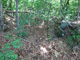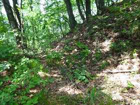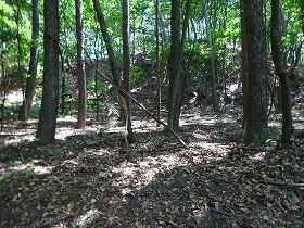 この下方の部分にも、多少の削平の跡や竪堀のようなものが見られる。途中にも番所のようなものが設置されていたのであろうか。