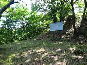 | 最初に見えてくる孤落城2郭下の堀切。 | 2郭。昭和47年に建てられた案内板がある。 |