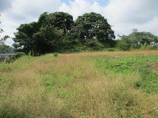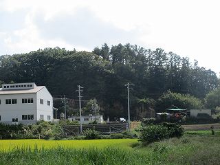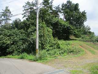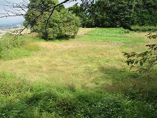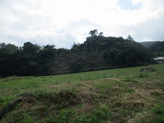 | 北側から遠望する荒山。ここからの比高は20mほど。 | 西側の城内入口。 |