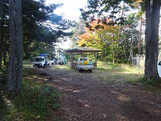 | 足畑山の内部。公園となっている。この日は奥の鉄塔の工事中で車が何台もj入り込んでいた。 | 内部にある祠。 |