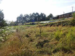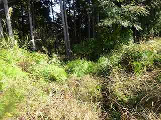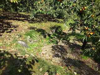 | 民家の下の荒れ地となっている郭。 | その中央部には虎口状の切れが見られる。 |