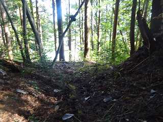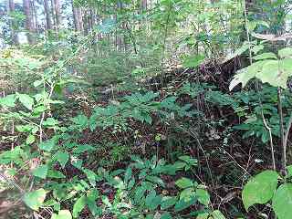 そこから上に登ったところに、斜面に平行な道が付けられていた。ということで、まずはこの道を通って北側の出城部分に進んで行ってみることにした。