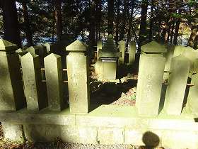 道路を挟んで集会所の西側には民家があるが、その西側の山林に墓地が置かれている。その墓地から南側にかけて重厚な土塁が盛られている。城郭遺構であるとは思うのだが、なぜ、この部分だけに大きな土塁があるのかは不思議な感じである。非常にアンバランスな印象を受ける。